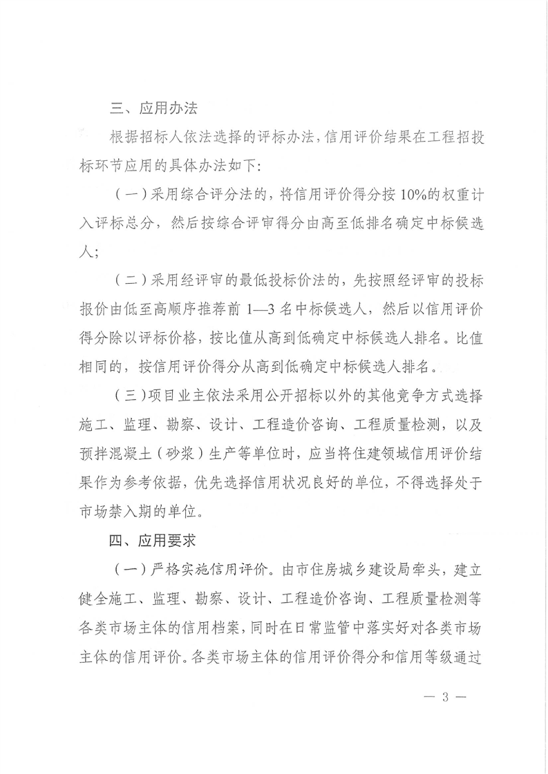 關(guān)于將住建領(lǐng)域信用評(píng)價(jià)結(jié)果應(yīng)用在工程招投標(biāo)環(huán)節(jié)的通知
