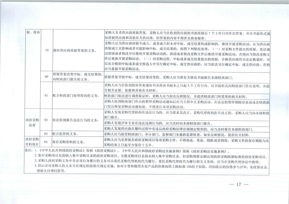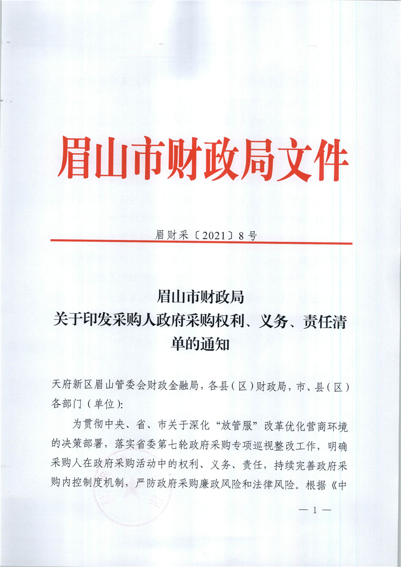 關于印發(fā)采購人政府采購權(quán)利、義務、責任清單的通知 地址:眉山市東坡區(qū)眉州大道東三段186號天天向上5幢1單元11層3號