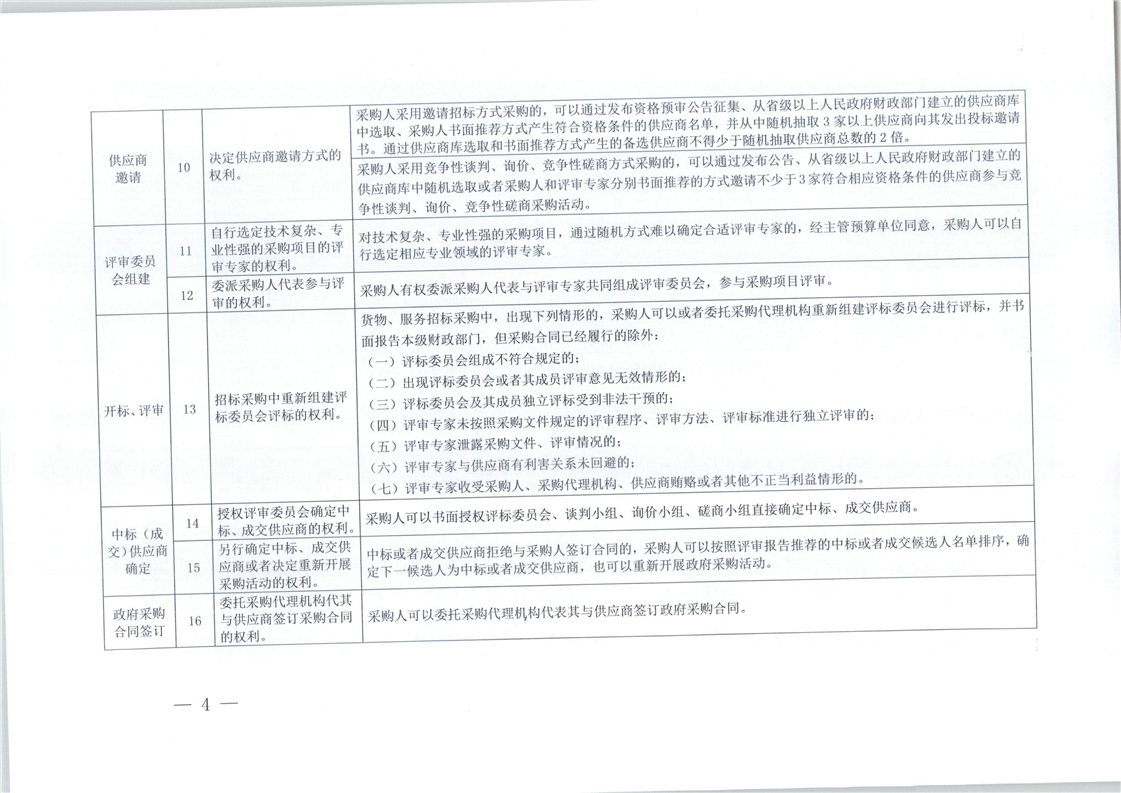 關于印發(fā)采購人政府采購權(quán)利、義務、責任清單的通知