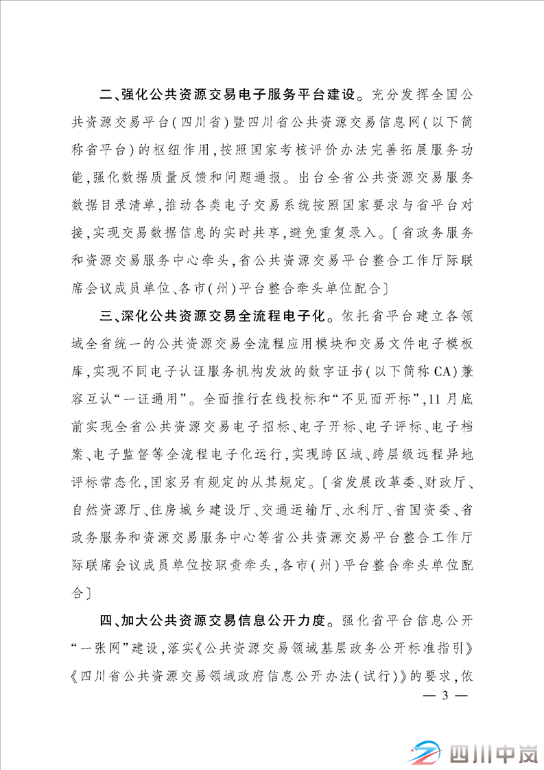 四川省人民政府辦公廳關(guān)于印發(fā)《四川省深化公共資源交易平臺整合共享2020年重點工作任務(wù)》的通知 地址:眉山市東坡區(qū)眉州大道東三段186號天天向上5幢1單元11層3號