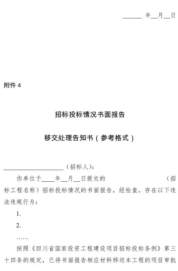 4.《招標(biāo)投標(biāo)情況書面報(bào)告移交處理告知書》(參考格式)